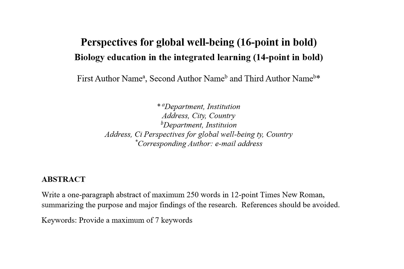Abstract should be written with Microsoft Word in Times New Roman, including the title (font size 16 in bold type), subtitle if needed (font size 14 in bold type), author's names (font size 12), affiliations (font size 12 in italics), text (maximum 250 words, font size 12) and keywords (maximum 7, font size 12).